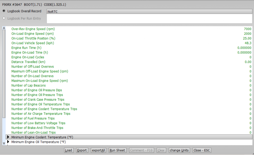 The AIM system is showing just over 10 hours of run time, however the LifeECU shows zero hours. From my research after I purchased the vehicle from a forum member, I believe the chassis hours are somewhere between 70-80 hours with the load time estimated to be ~40 hours. I cannot verify this due to the LifeECU data not being logged properly. I just want to be very transparent as I didn’t get that benefit from the previous seller. The car mechanically is in great shape, runs great and has no issues.