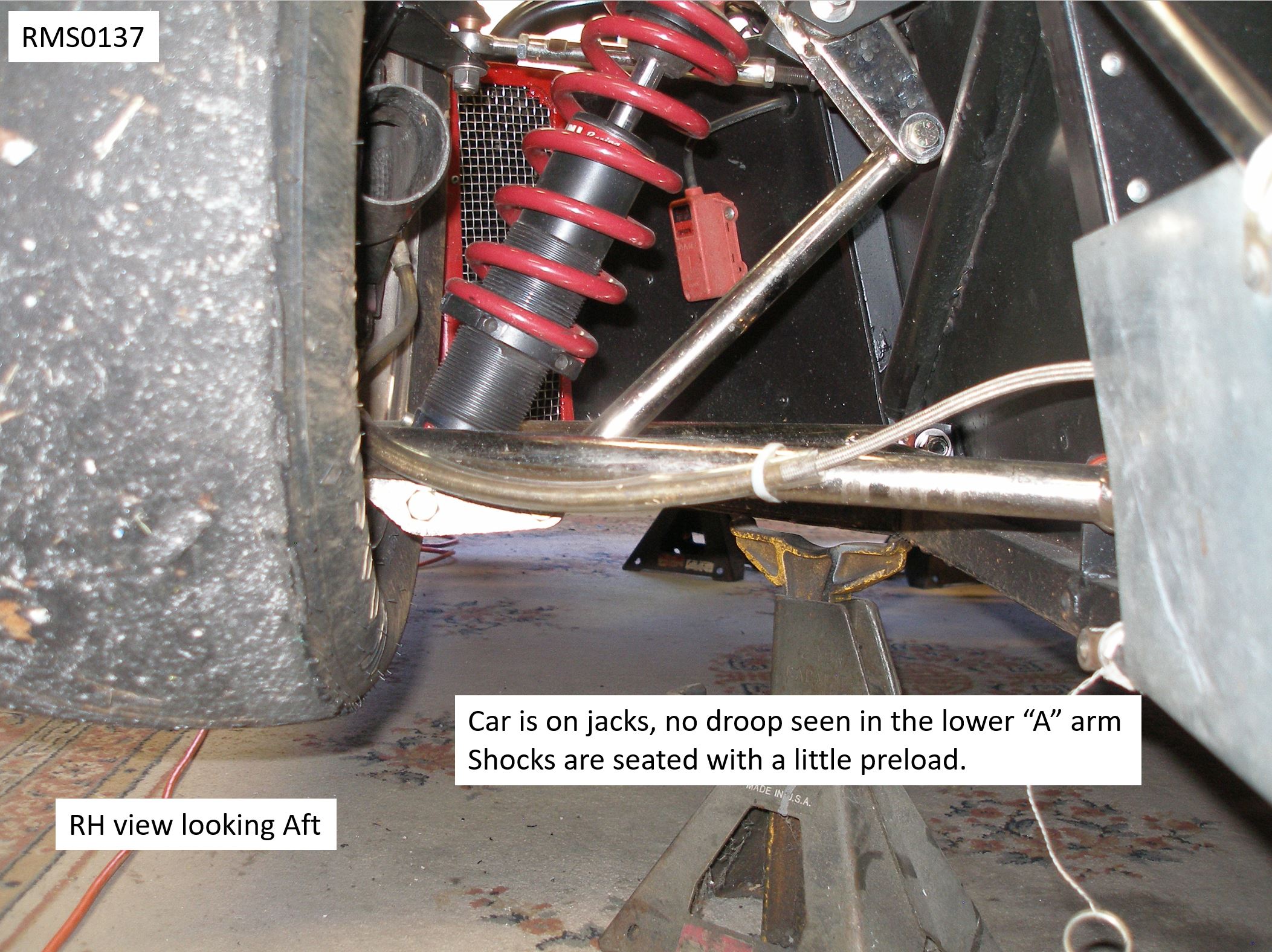 Would it be possible to have similar corner pictures of the rear? Showing spring position and droop, etc., and weight numbers you see from set up scales.