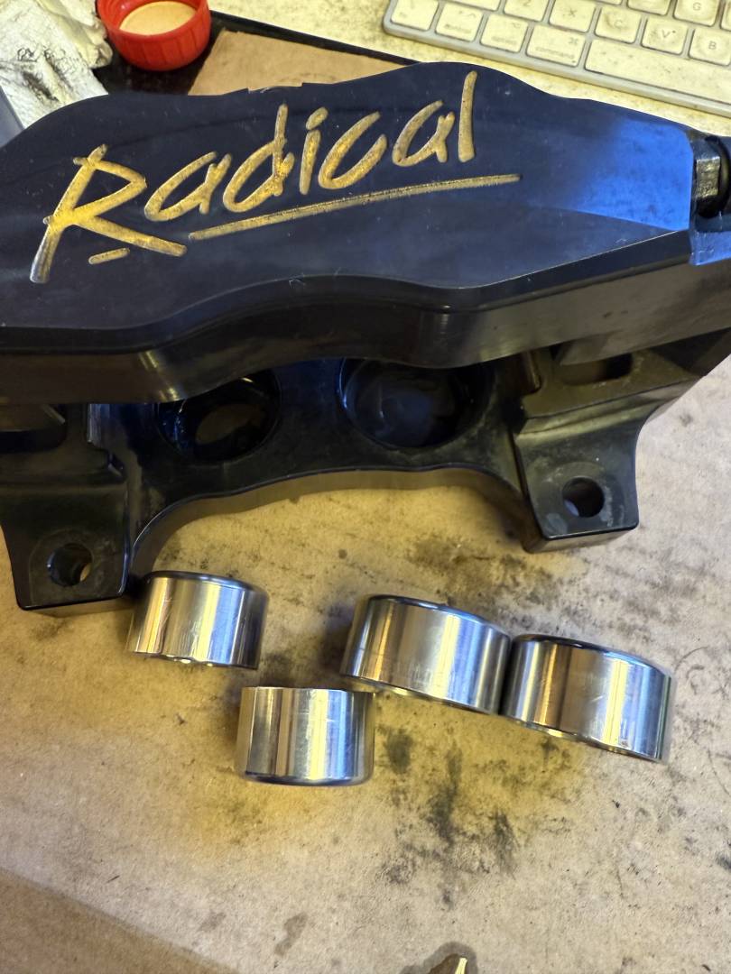Hi David (@rush-rentals), Sorry to hear you are having an issue. It sounds like you are trying all of the things I would try. When you talked with Hispec did you order the parts based on the model number on the calipers or by the diameter of the piston bores? I am pretty sure that these are not the stock calipers for a 2002 SR3 because the HiSpec calipers came later. I would recommend contacting HiSpec and asking them what they recommend. What condition were the cylinder bores in? Could that be contributing to the issue? It does sound like the seals are either the wrong size or material, or they had a reaction to the fluids you were using (which doesn't make much sense) and swelled up. To get the current pistons out of the calipers you might want to attach them to the car again and use the hydraulic system to push them out. I would put a piece of wood between the sides of the calipers so the pistons don't shoot out when they start to let go. If all else fails I would recommend contacting Spring Mountain or one of the Radical dealers and see if they have had this problem before. Many of the Radical suppliers have exclusive contracts so they only sell the parts to Radical. For example, you can't get Hispec to sell you a set of Radical branded calipers. It seems unlikely that the Radical seals are unique, but stranger things have happened.