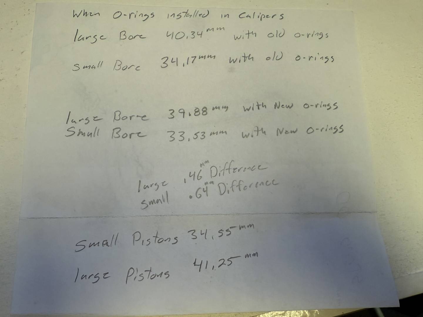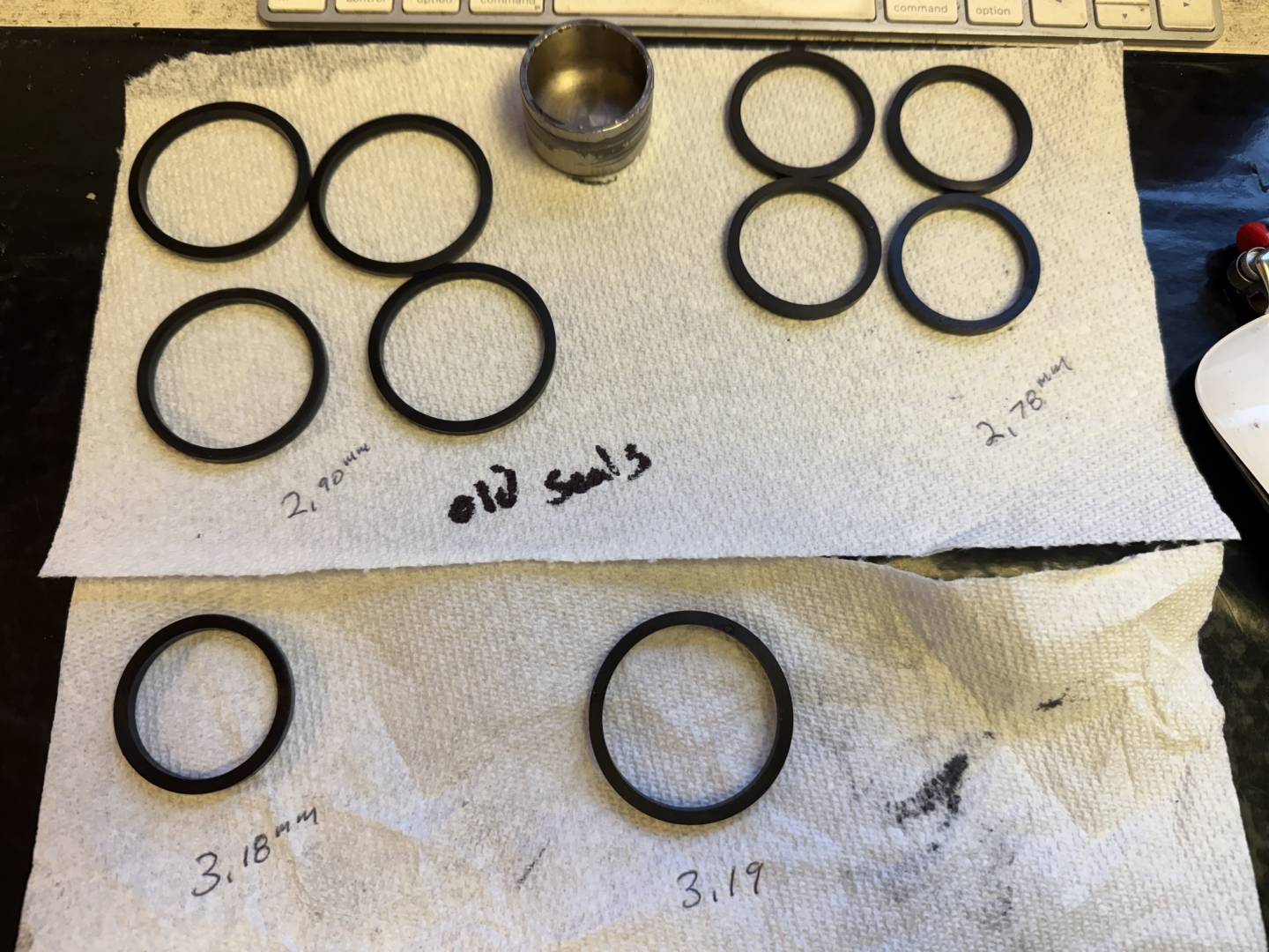 When the new seals are installed in the bore the small piston seal measures .64mm bigger with the large piston seal measuring .46mm larger. tells me with the seals being a half mm larger on average that in no way will the pistons move no matter how much lube is used.
