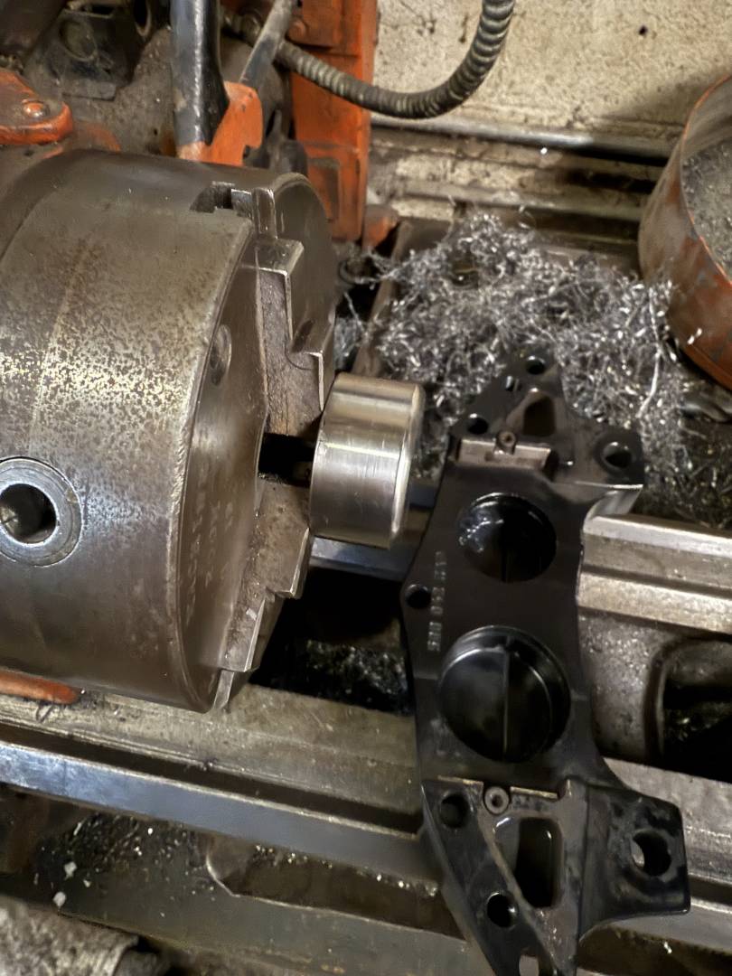 how I ended up removing the stuck pistons was to reverse chuck them in the lathe with the jaws holding the pistons from the inside of the cup and pry them out working the flat pry bar back and forth on each side a little at a time.