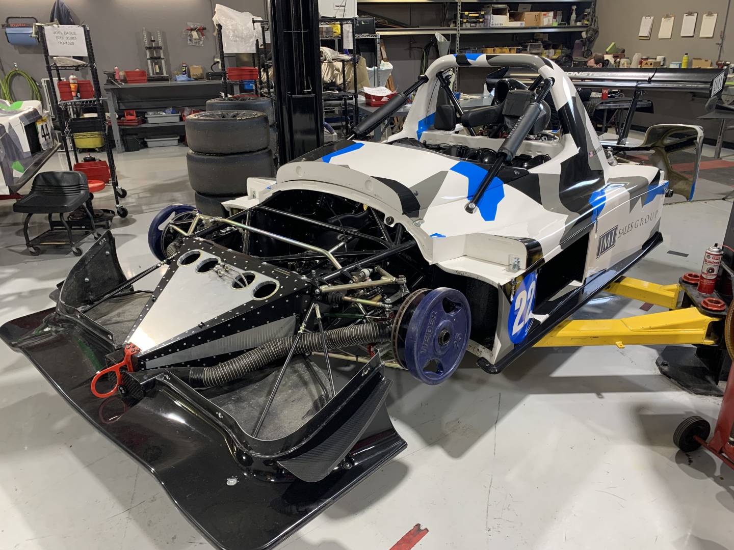 What I do when I need the car on a lift, is that I remove the rear diffuser and lift the car up on the rear part of the chassis, way beyond the genter of gravity. Removing the rear diffuser is quick and easy with the car on its wheels.