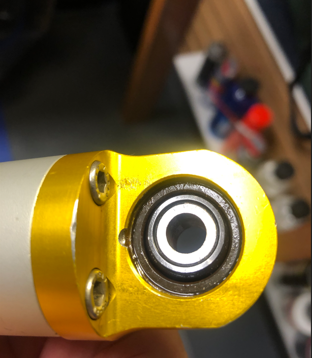 Then I've struck another issue... I can't get the spherical bearing out of the anodized housing.. nor can I get the steel bushing out of the centre of the spherical bearing...