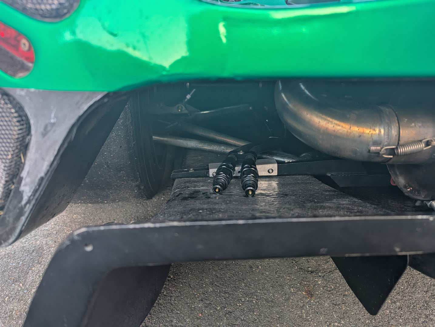 i was just about to ask for pics so thank you! I will have to mount them differently at the back because i'm running the Quiet exhaust with 2 mufflers and it uses up a chunk of that space to wrap round itself. I was thinking of just running both hoses together up the floor, tie wrapped to the lower control arm brace and then somehow attach it to the rear diffuser bracket. It's easy enough for me to then reach in and connect.