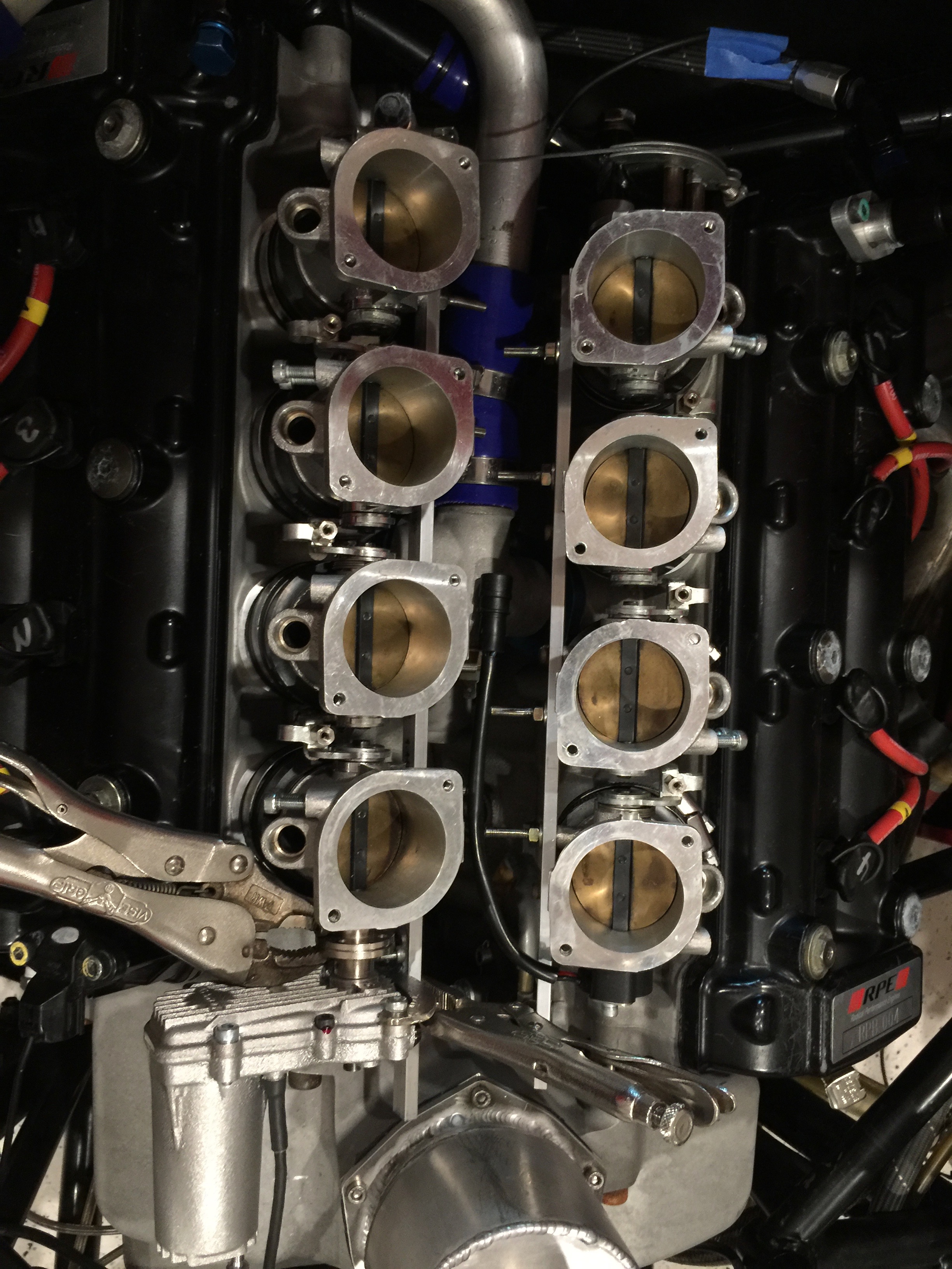 So off to add vacuum ports to each of the throttle bodies that can then be connected to a vacuum manifold (2 cubic inches to handle all eight TBs).