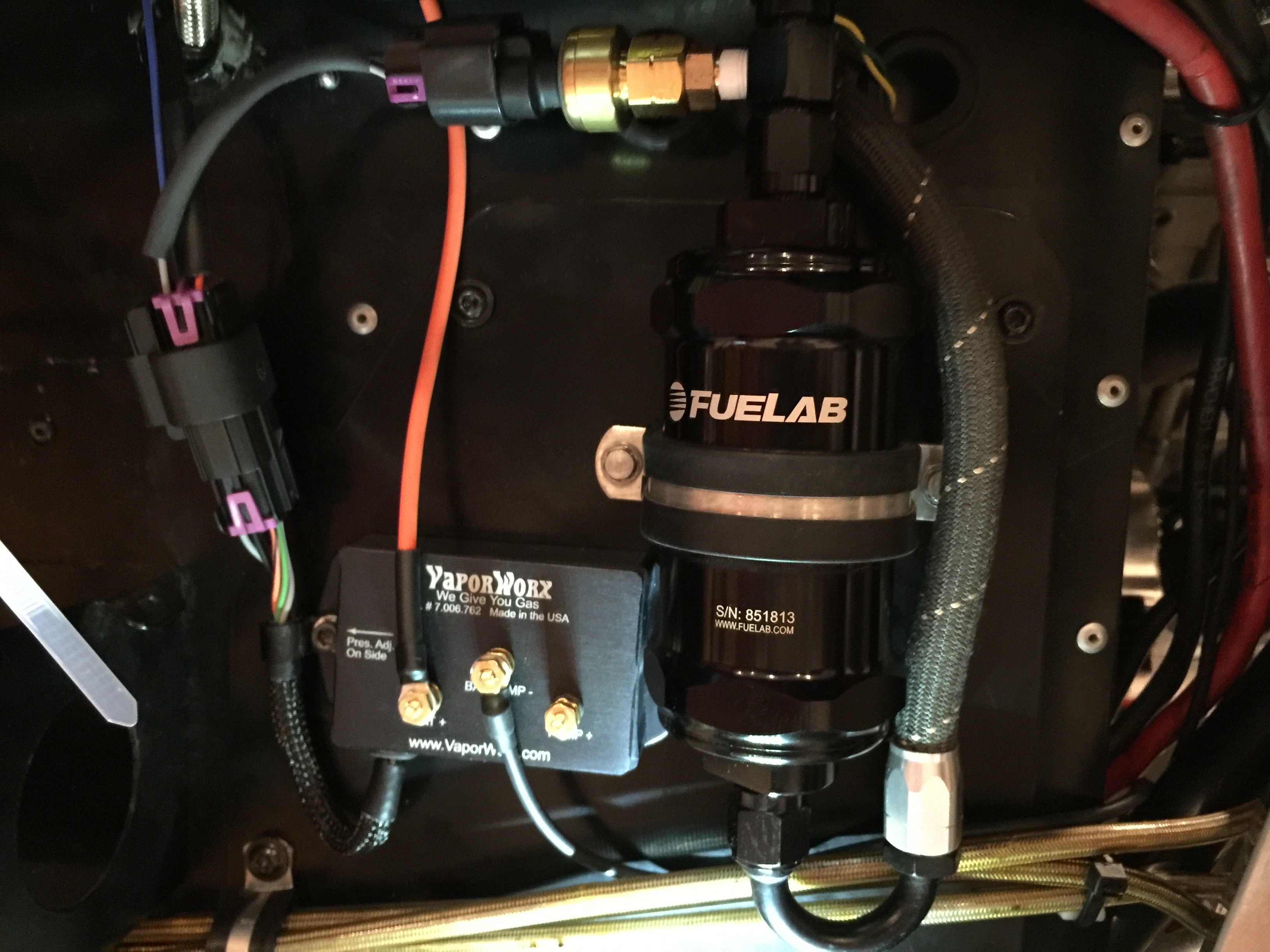 That way is to use PWM (pulse-width modulated) control of the fuel pump. I bought a new fuel pump (my 07 Radical SR8 uses a Siemens/VDO pump from a 2002 Audi TT) and sent it to my buddy Carl Casanova at VaporWorx. Carl tested the pump and tweaked his fuel pump controller to run the VDO pump at 60 psi. The controller needs input from the dedicated fuel pump sensor along with the MAP sensor (to provide fuel pressure relative to manifold pressure). The controller can maintain this pressure from idle to wide open with less than 1% delta from the target pressure.