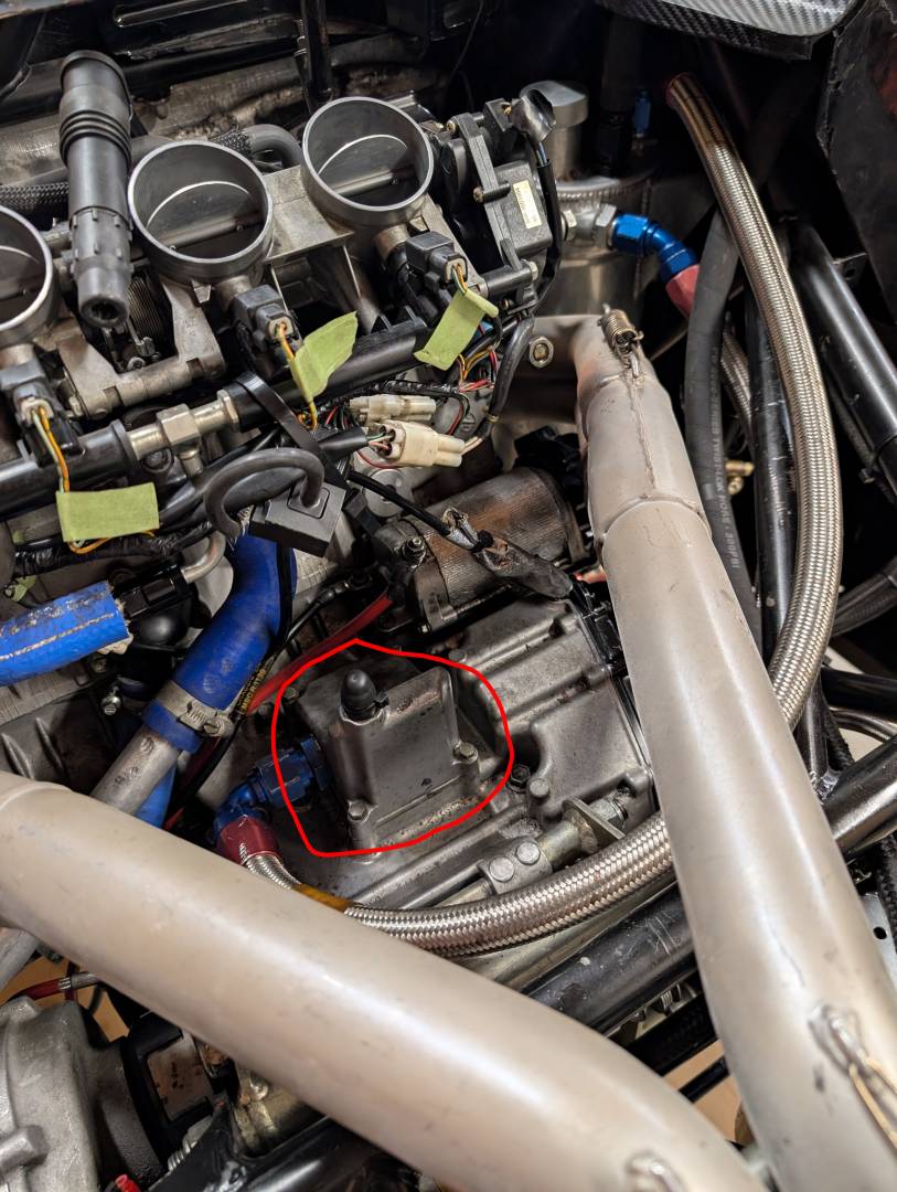 Here are two diagrams showing the oil line routing for a Gen 1 (Supersport) and a Gen 2 (RS). It the Gen 1 diagram it doesn’t show an oil catching can and it has the line that would go to a catch can going back to the engine. Perhaps this is the issue?