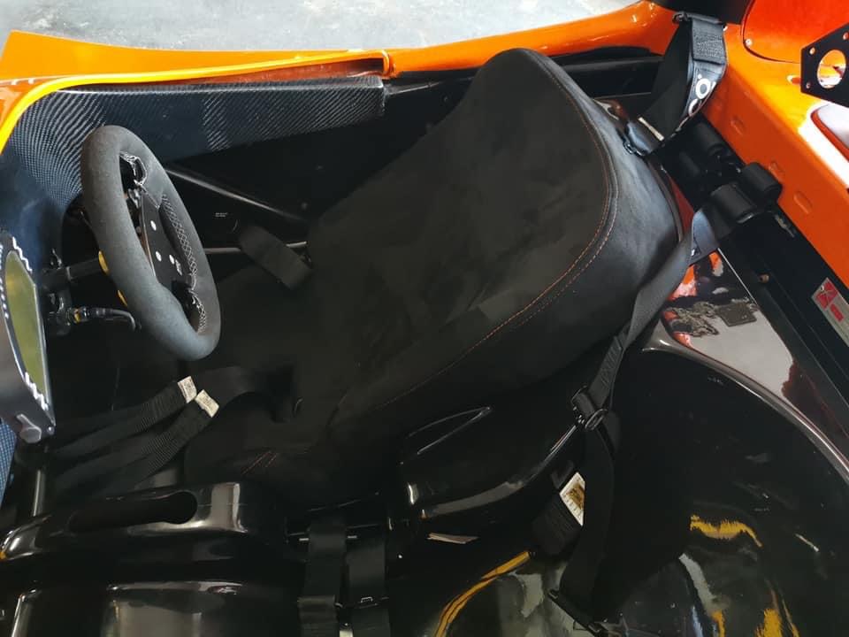 We had a unique situation. My daughter is Five feet two and her coach is Six feet two. We wanted both the coach and driver to be able to drive the SR3. I bought a Tillett B4 seat and a Recaro FIA slider but couldn't mount it properly. We were stuck with the bench seat so we decided to make a seat insert. Also had to make pedal extensions for all 3 pedals, a 1 inch platform for her heals just before the pedals and the steering wheel is pushed as close to the dash as we could while keeping clearance for her hands from the AIM display. It's still not ideal, the steering wheel is too close to her chest so she has no leverage but she's able to do laps. The insert was made at J.P. Motis Service and Tuning in Cyprus. Great guys there who service Radical drivers in Greece and Israel as well. They imported the foam kit and fit it to my daughter. Then had it covered in Alcantara. It came out awesome! Deviated orange stitching for good measure. We brought it out to the track and it worked great. Plenty of lateral support and the foam allows the belts to be sinched really tight.