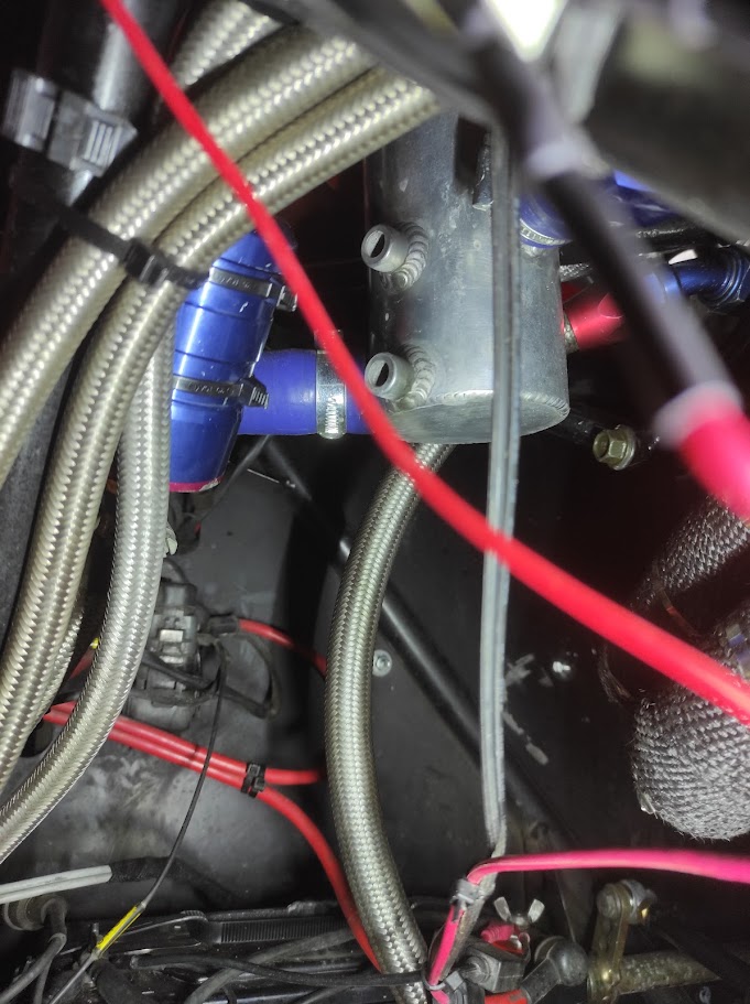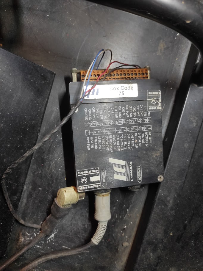Hi @nico-fr-18, the device you found near the passenger foot is part of an old Pi Data System. The Pi System typically ties into all of the cars sensors and outputs the information on a small dash near the driver. It does not typically feed the Aim dash that you have pictured. What chassis number is your car? It appears that your car originally came with the optional Pi Data system and at some point someone upgraded to the Aim days. Hopefully when they upgraded to the Aim dash they installed a new harness and didn't use parts of the Pi Harness. The coolant temperature sensor that you need is installed on the swirl pot on the left side of the engine bay (see the attached picture). You can test that sensor to make sure it is working properly with a ohm meter. You can also check the wire run to see how that wire ties into the aim dash. Or you can run a new wire from the aim harness to the water temp sensor. I hope this helps.
