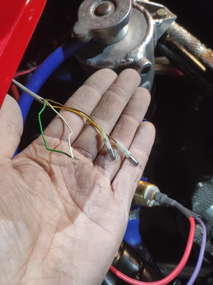 on the wiring datas the temp chanel is chanel 4 and should be corresponding to white/red/black/blue wires . For an unknown reason the previous owner during his unfinished restauration replaced the temp sensors with standard 2 wire sensor and with some used spare parts I found this used sensor too (i dont know tech datas).