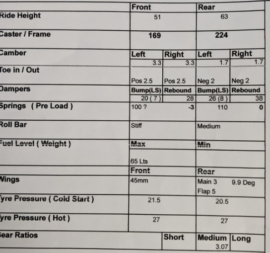 what's the quickest way to do this? Tyre pressures, wings, or dampers?