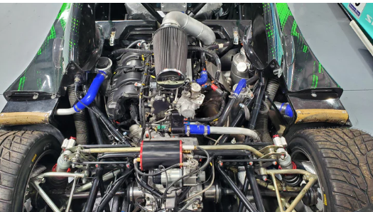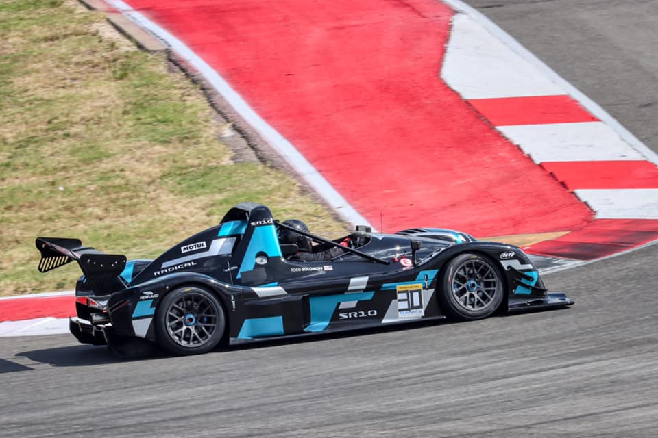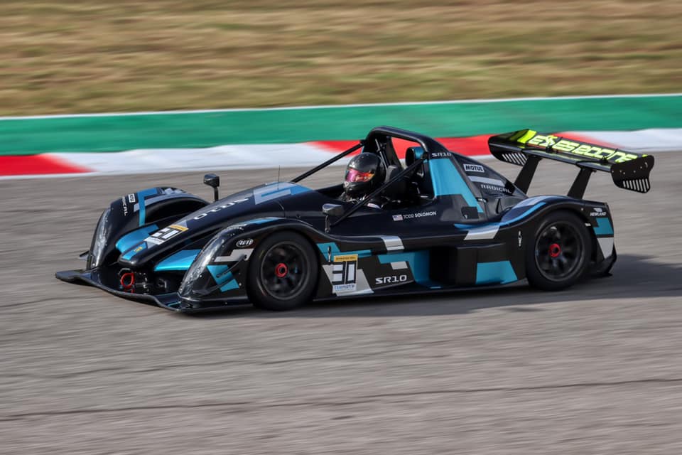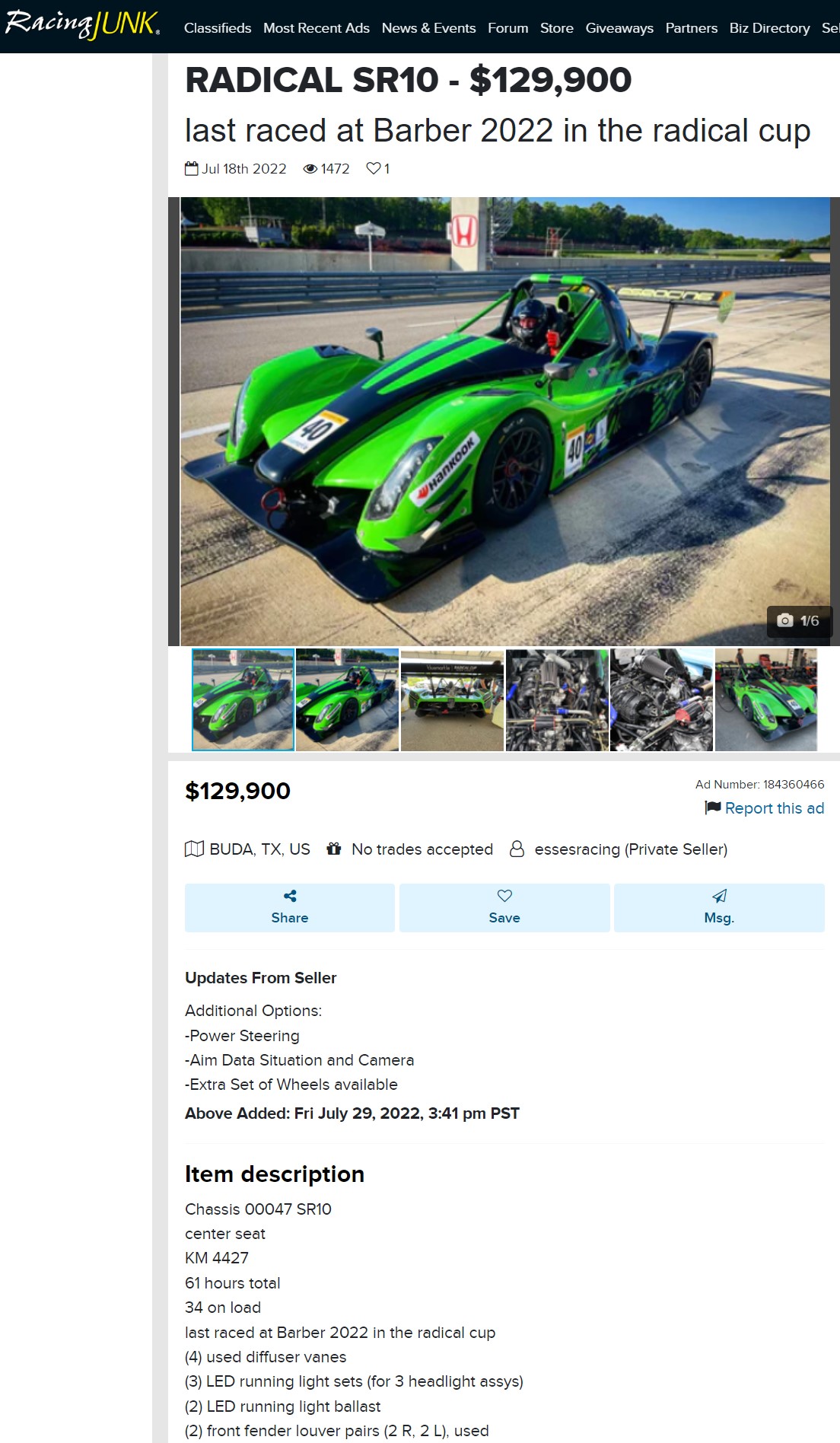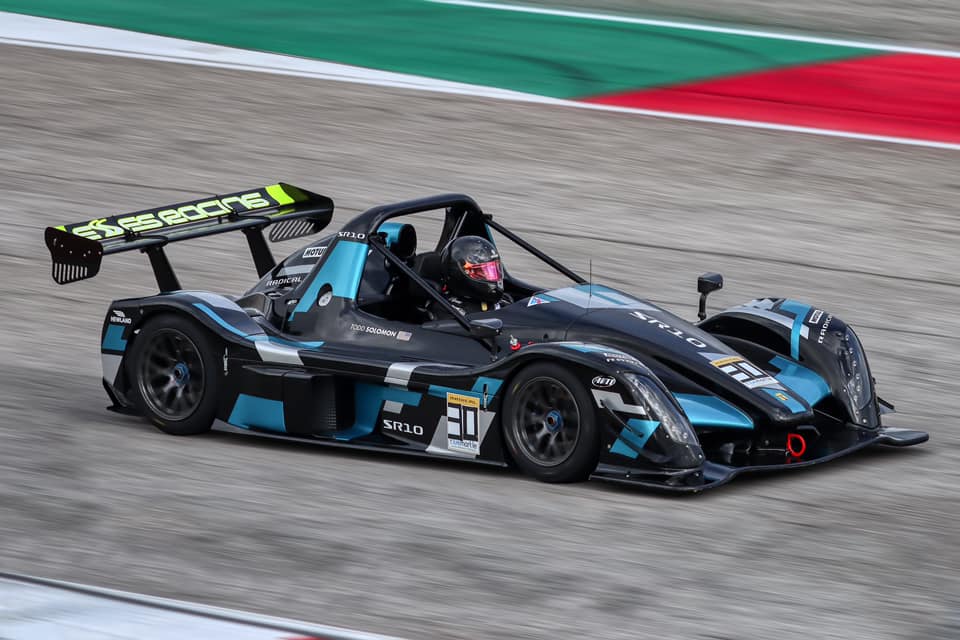 Radical SR10 chassis number 47 is a black center seat car with blue and silver graphics. In July 2021 the car was located at Esses Racing in Texas.
