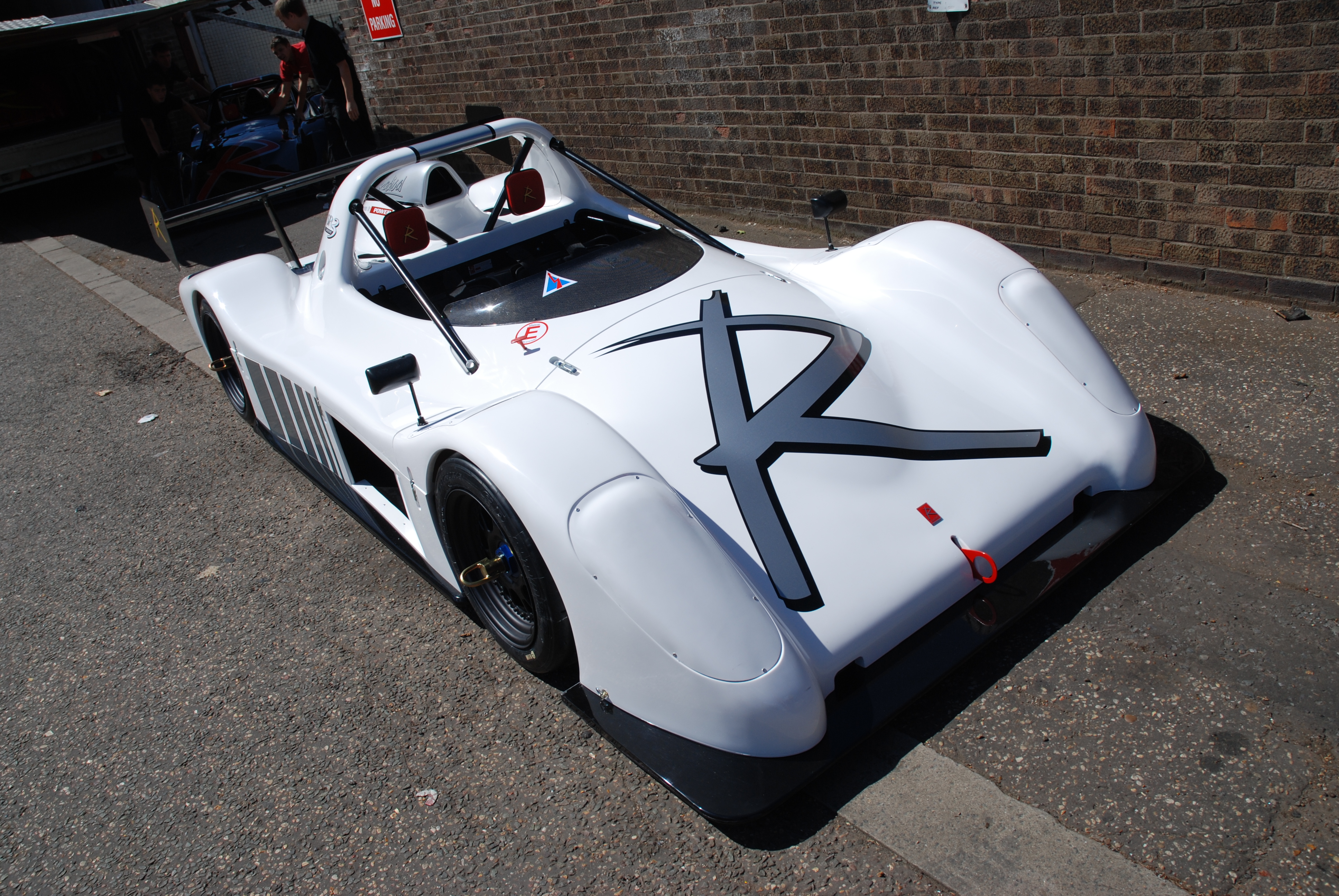 Radical SR3 chassis number 394 is a white car with a grey R on the nose. It has the Standard mirrors and aluminum rear wing.