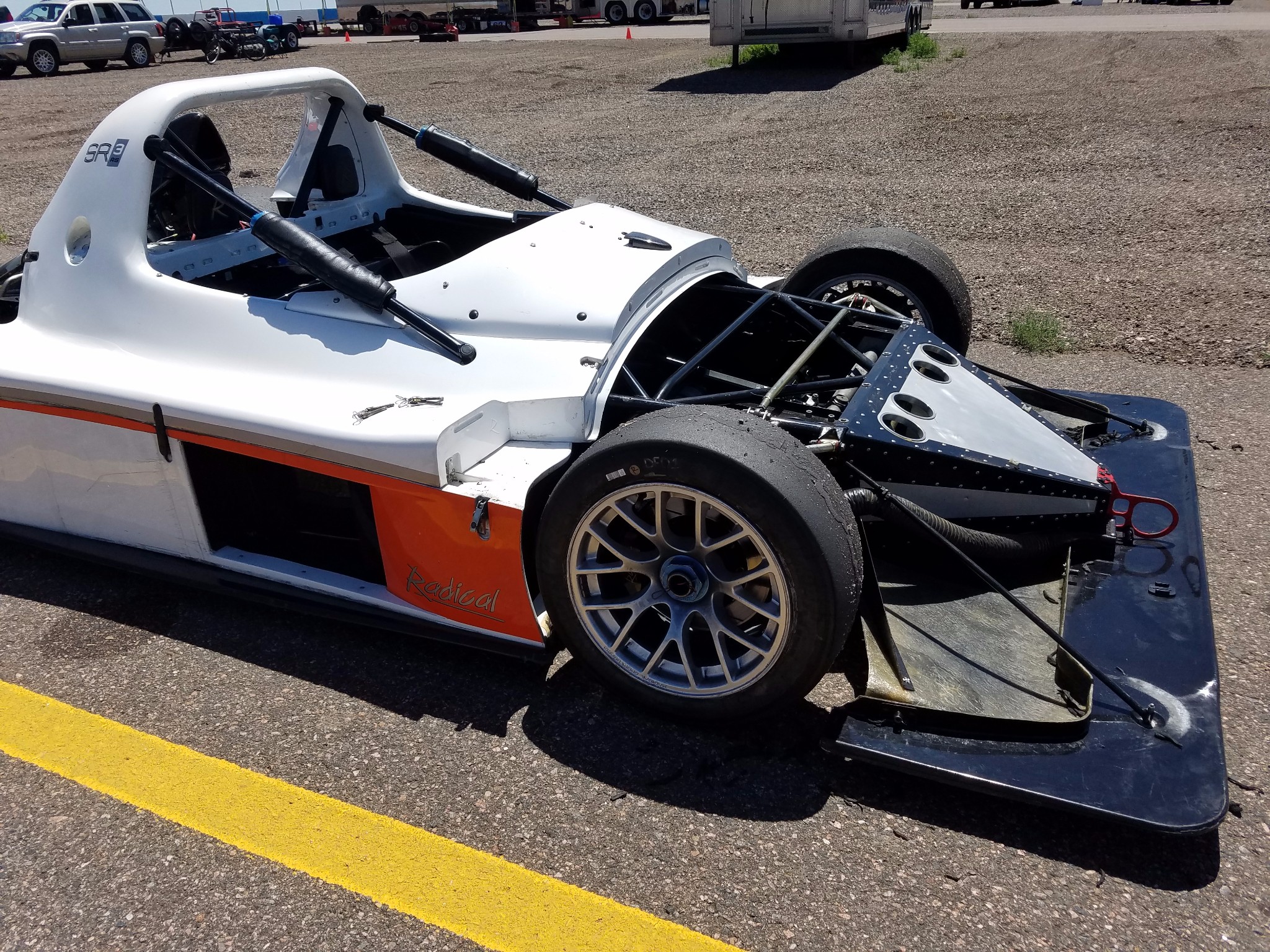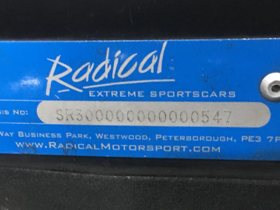 Radical SR3 chassis number 547 is a white car with Orange / grey graphics, used for corporate rentals at Castle Combe in England. Has dual controls, registered for street use in UK. Sold by XNR Racing.com