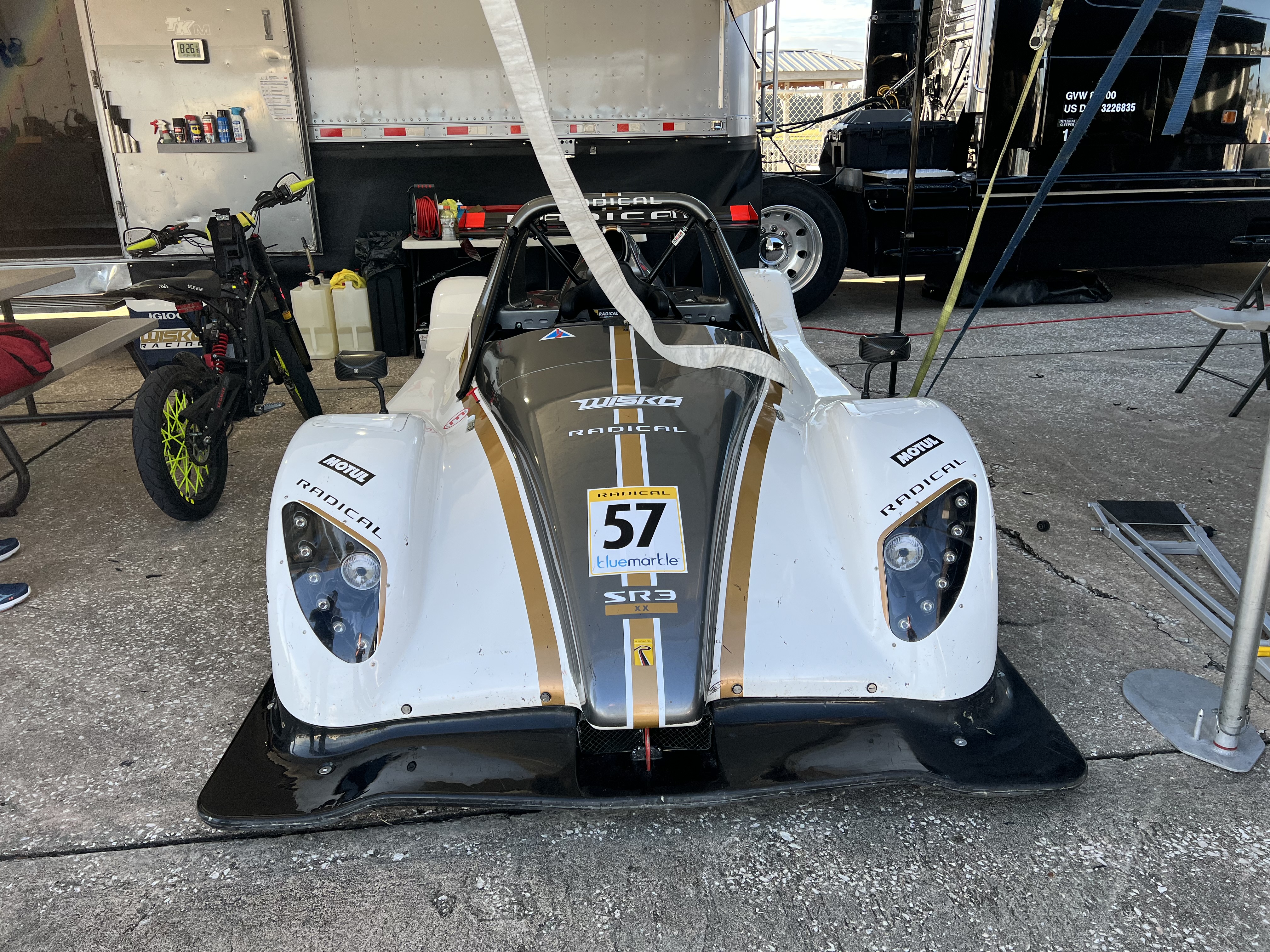 Radical SR3XX chassis number 1351 is a white car with a center seating position and a 1500cc engine. It has the optional Carbon dive planes, brake pressure logging, and steering logging. In July 2021 the car was located in Tennessee.