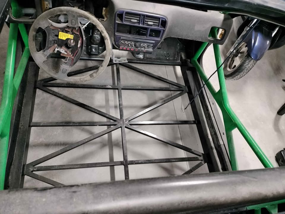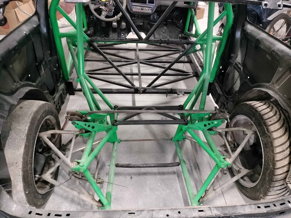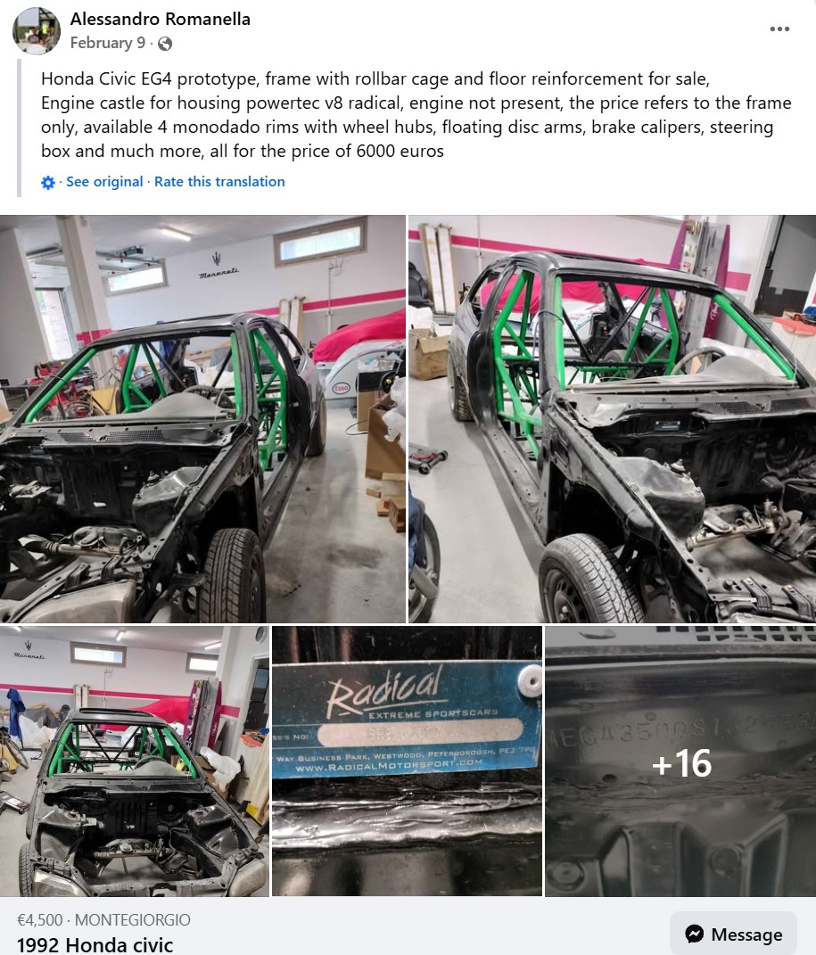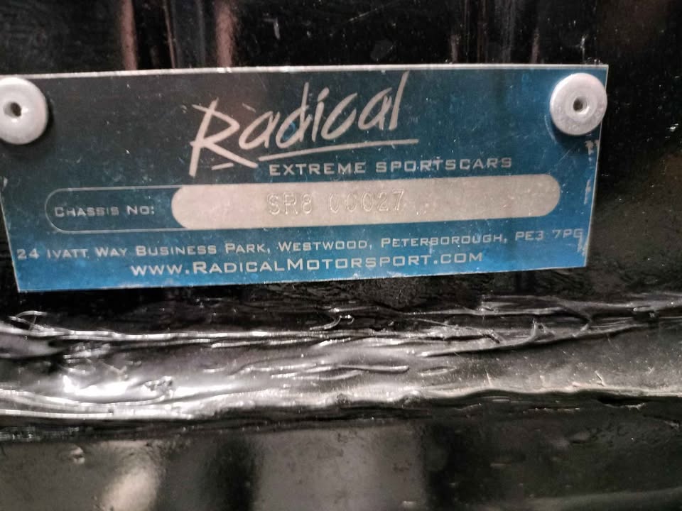 Radical SR8 chassis number 27 is an anchusa blue right hand drive car with carbon trim, a 2.6L RPA V8 engine and MBE 975 ECU, Intrax triple adjustable dampers, and a Stack dash. The car was originally delivered in the U.K.. In June 2025 the chassis had been chopped up and was put into a Honda Civic project car.